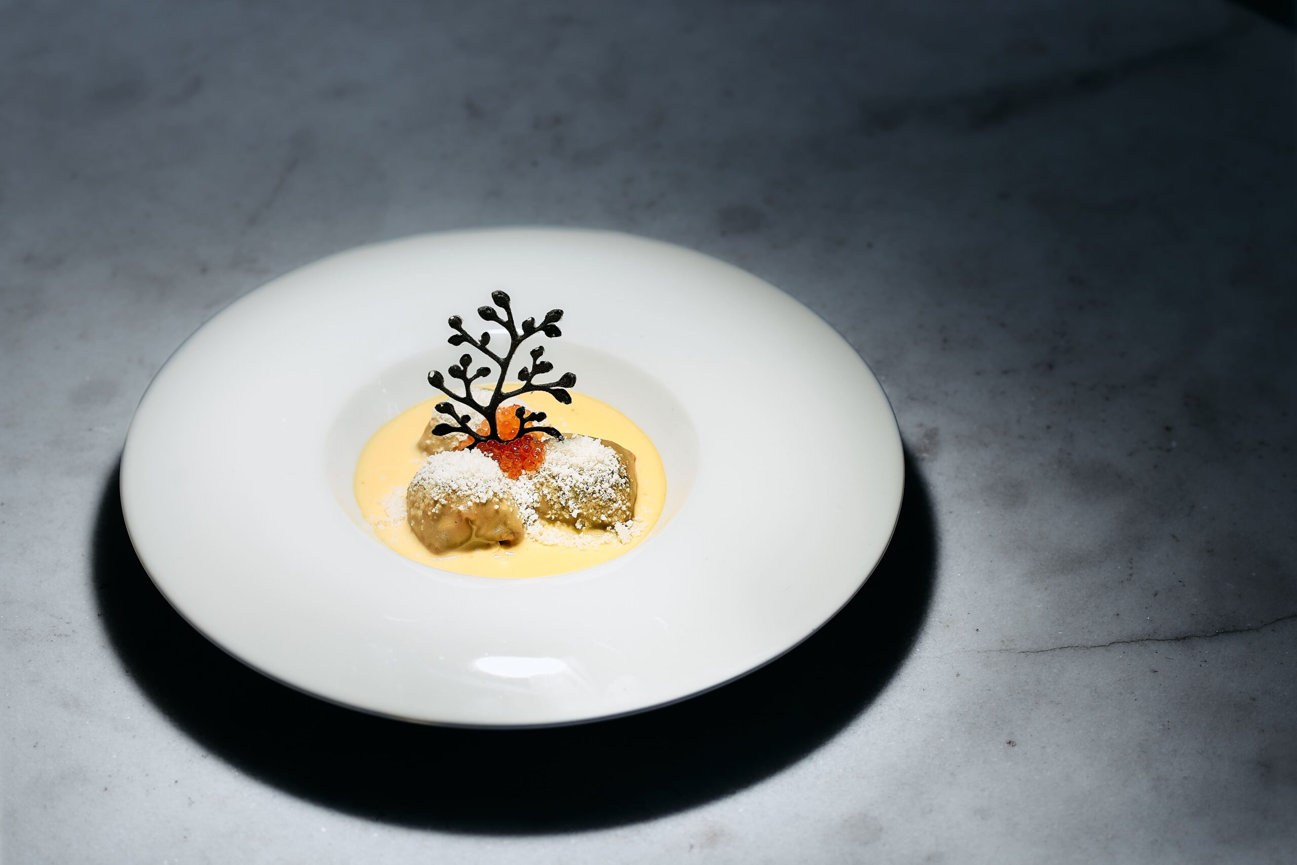Regal oyster No. 2 with passion fruit pearls and jalapeño