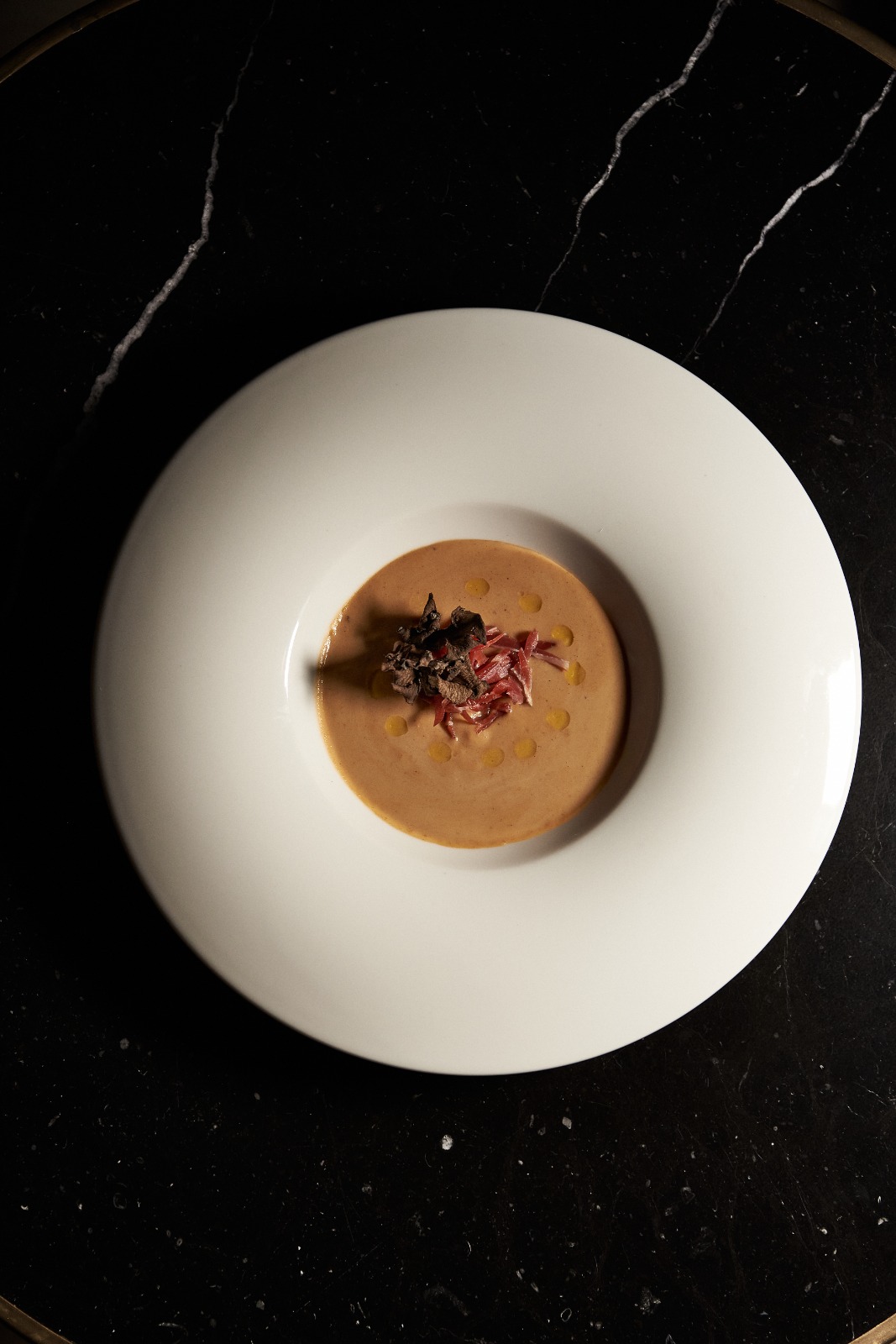 Acorn-fed Iberian ham D.O. Guijuelo with crispbread and Raf tomato